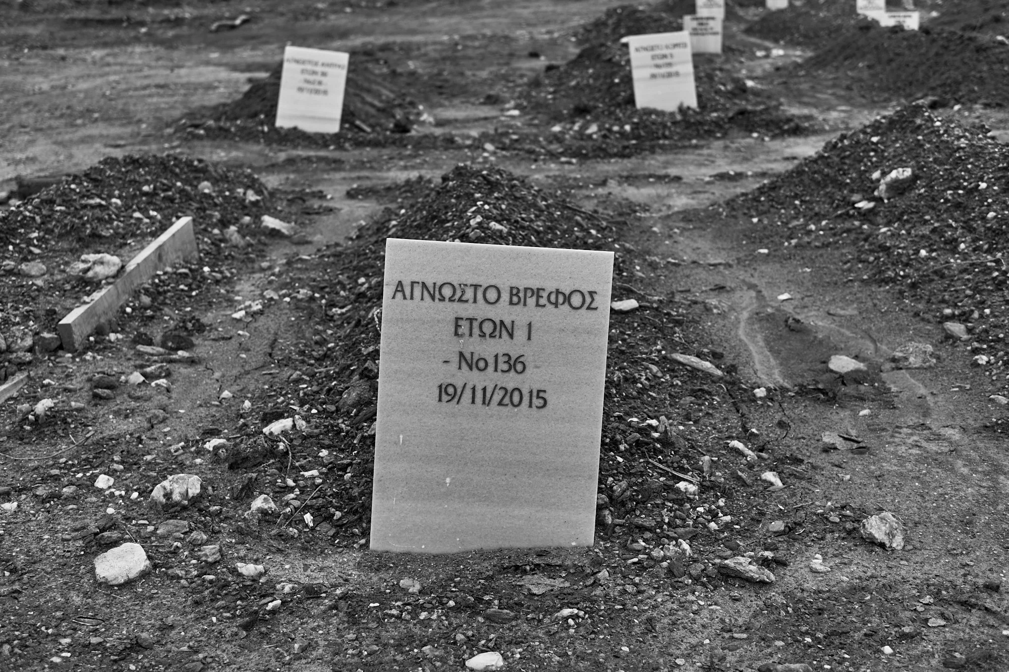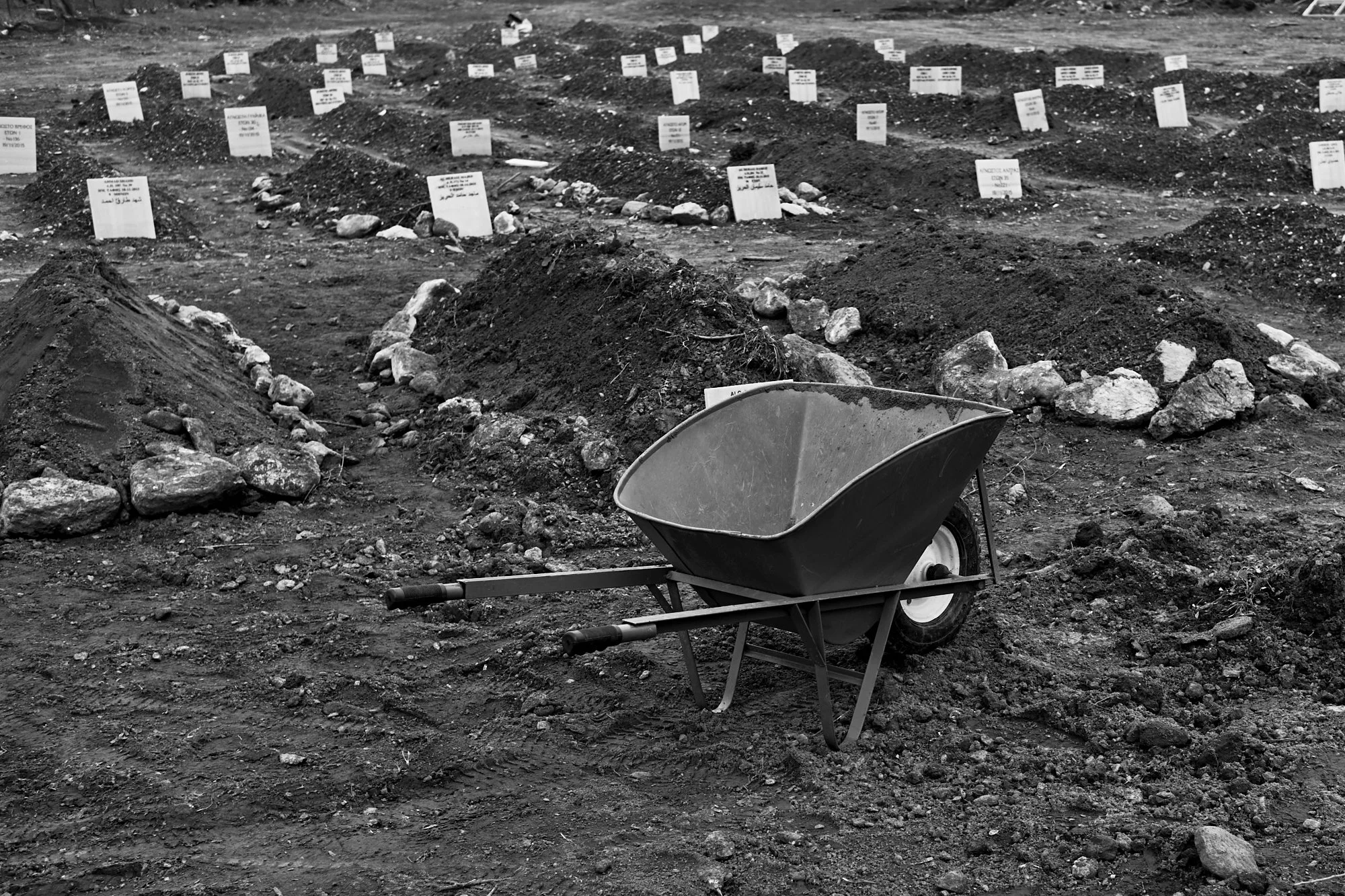 While most of the volunteers soon left the island to return home, one man remained. Mustafa Dawa, a thirty-year-old from Egypt who had lived in Greece since his twenties, took on the unofficial role of washing, shrouding, and burying the remaining dead. In one week he completed fifty-seven burials, and on one day alone, eleven. The tragedy and horror of his work included burying headless victims and many children.