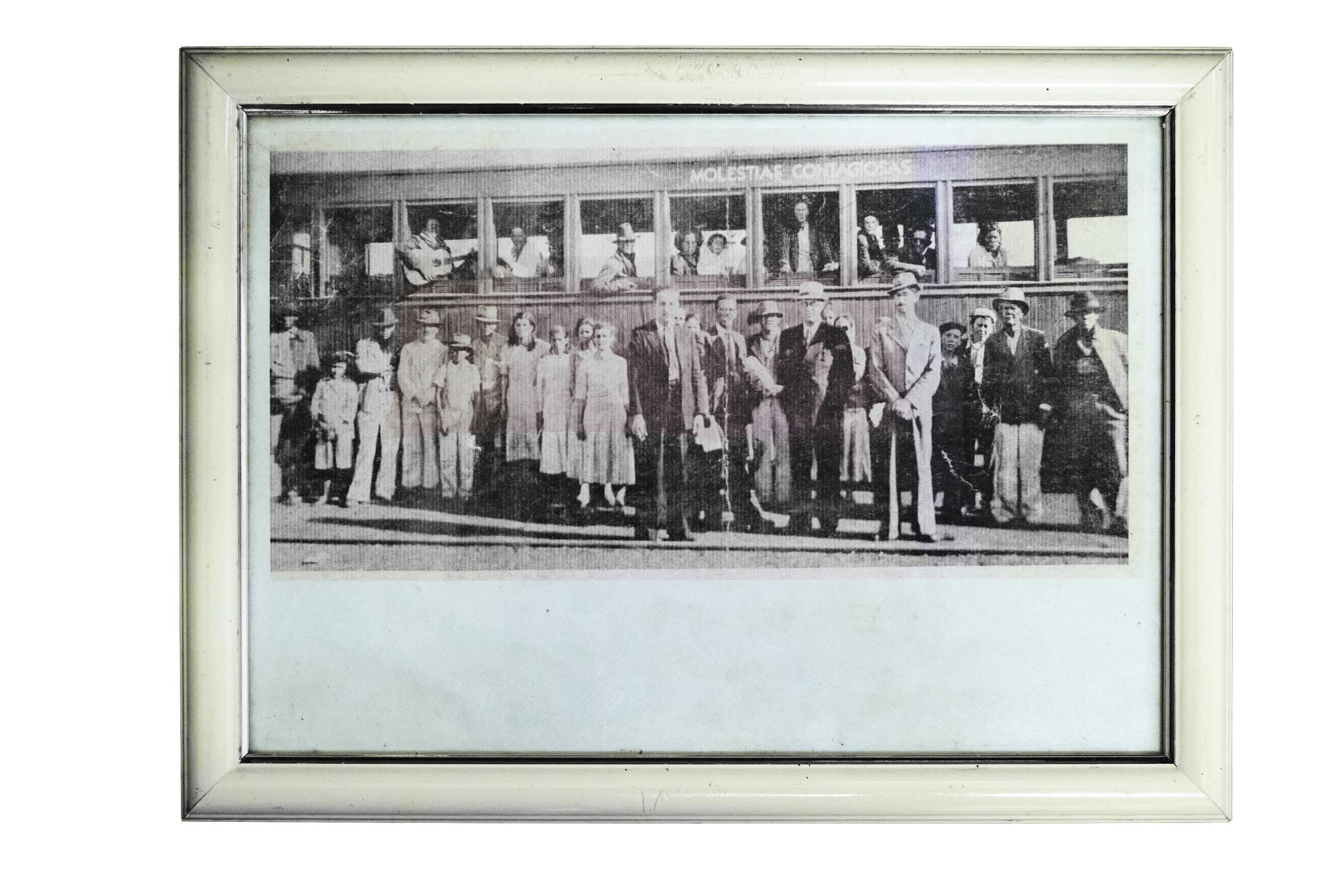People stand beside the carriage they have arrived in, labelled ‘molestias contagiosas’ (contagious diseases). Betim, circa 1930.